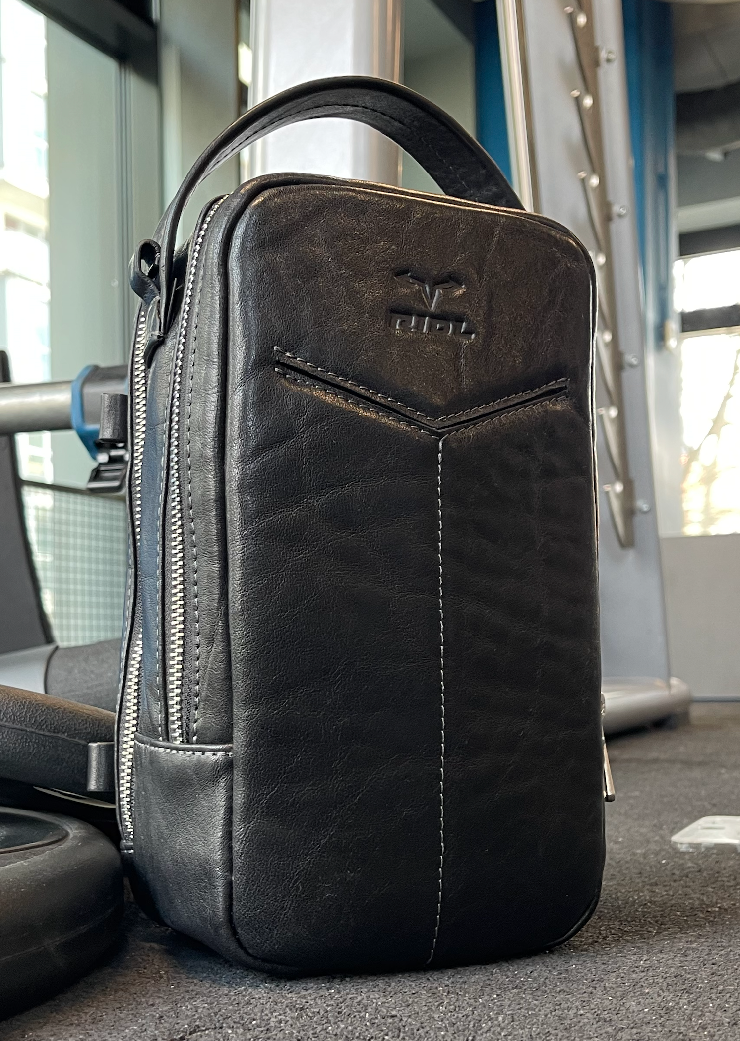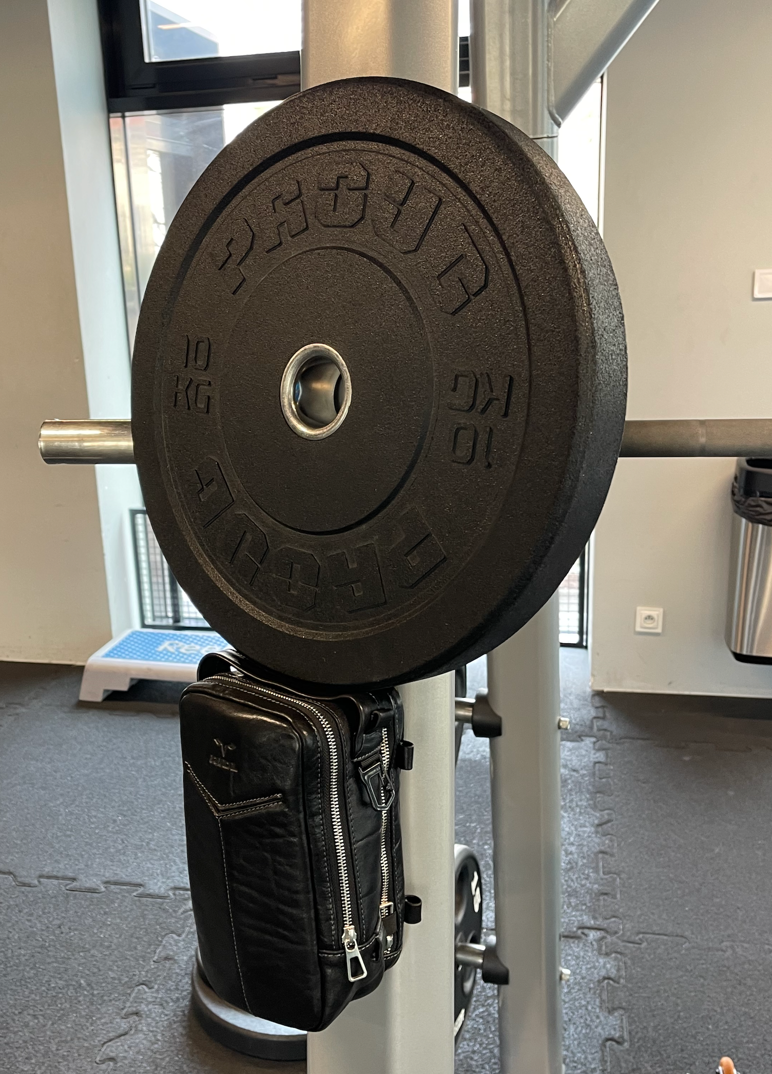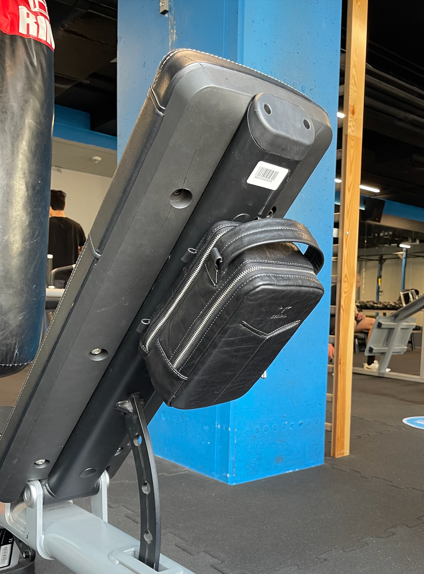 The premium leather bag designed for gym enthusiasts. Thanks to its powerful magnetic system, it securely attaches to any metal surface — machines, barbells, racks, and more. The bag fits a water bottle and a special phone holder, keeping your essentials within easy reach during every workout.